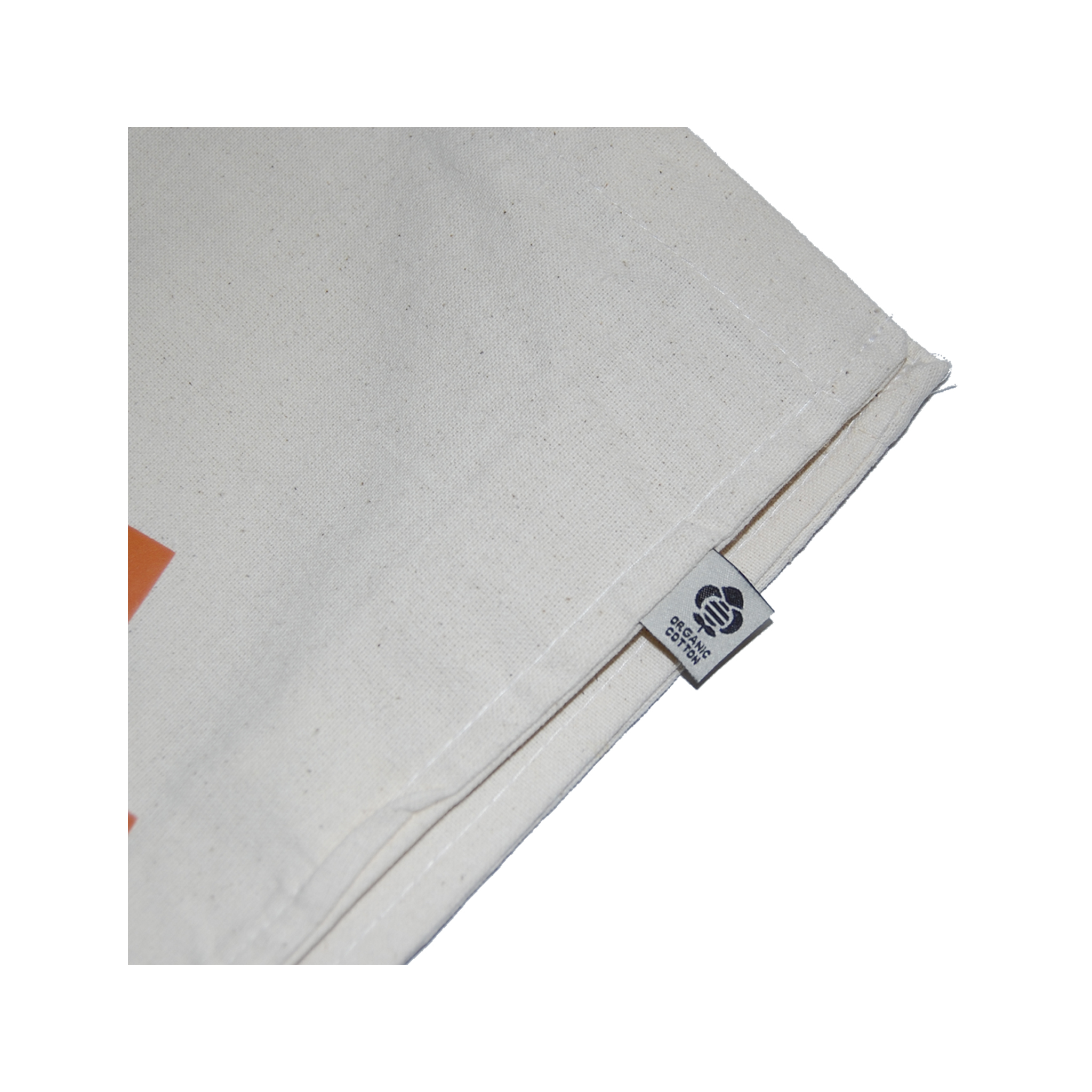 Bossa 100% cotó organic, fons de color natural amb estampat de vinil.